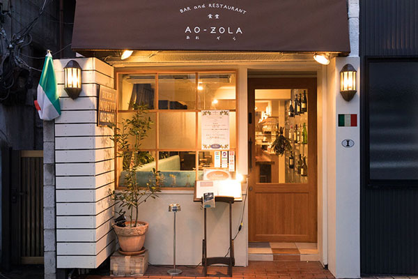 「Bar and Restaurant 食堂AO-ZOLA(アオゾラ)」は京王井の頭線・池ノ上駅から南方面に徒歩3 分、池ノ上商栄会通りに面した2016 年5 月9 日オープンのイタリアンレストランである。オーナーシェフの吉野宗典さんは、イタリア現地のリストランテで習得した本場の調理技術を駆使して、旬の山海の素材を用い、日本の風土に合った新たなイタリアンを追求。豊富なワインリストの他に、日本各地のこだわりの日本酒を取り揃えているのも特徴で、魚醤などの和の調味料との意外性あるマリアージュを提案している。