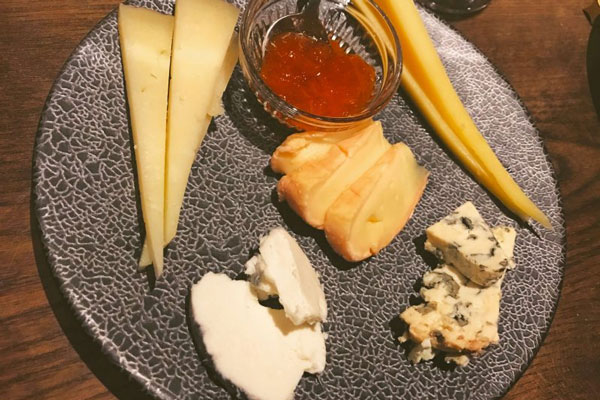 山羊のチーズをはじめ、さまざまなチーズが贅沢に並べられたプレート