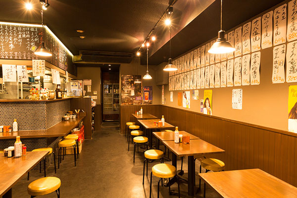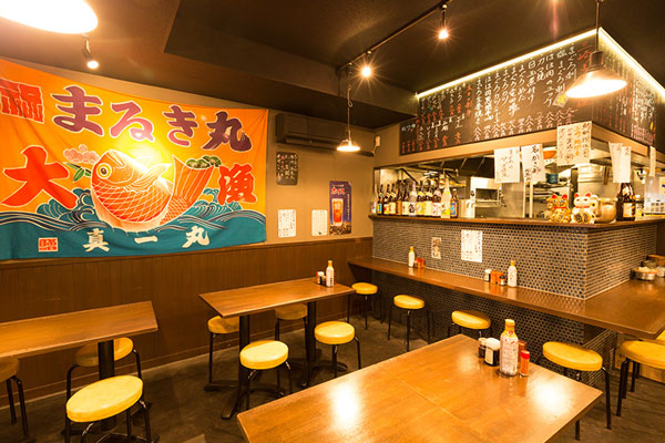 壁、床、天井すべてを替え、中華料理店のイメージを完全に払拭。落ち着いた和の色調に変更した。テーブルや椅子も人数に応じて可動できるよう一新。大衆酒場感を打ち出すため、簡素な丸椅子を使用する一方、座面にクッション性を持たせることで座り心地のよさを提案する。