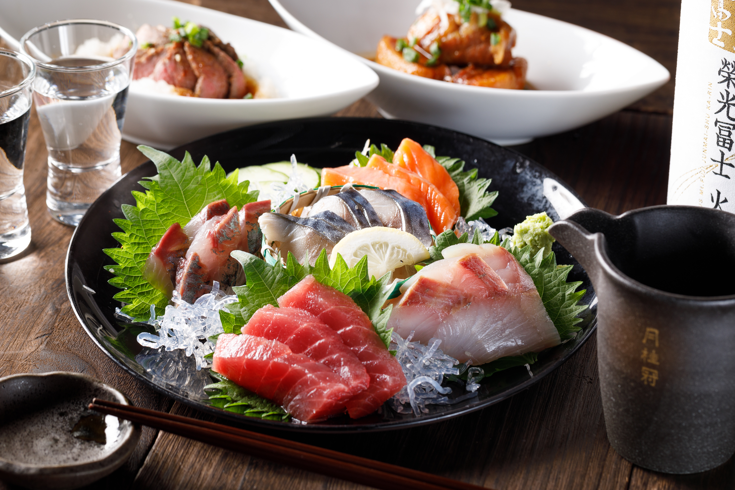 フードの看板は「川崎幸市場」より仕入れる新鮮な魚介の刺身。「界隈の飲食店のなかで最安値にした」(神﨑さん)という刺身の盛り合わせは、3種盛り750円、5種盛り999円という値付けで、オーダーを獲得する。