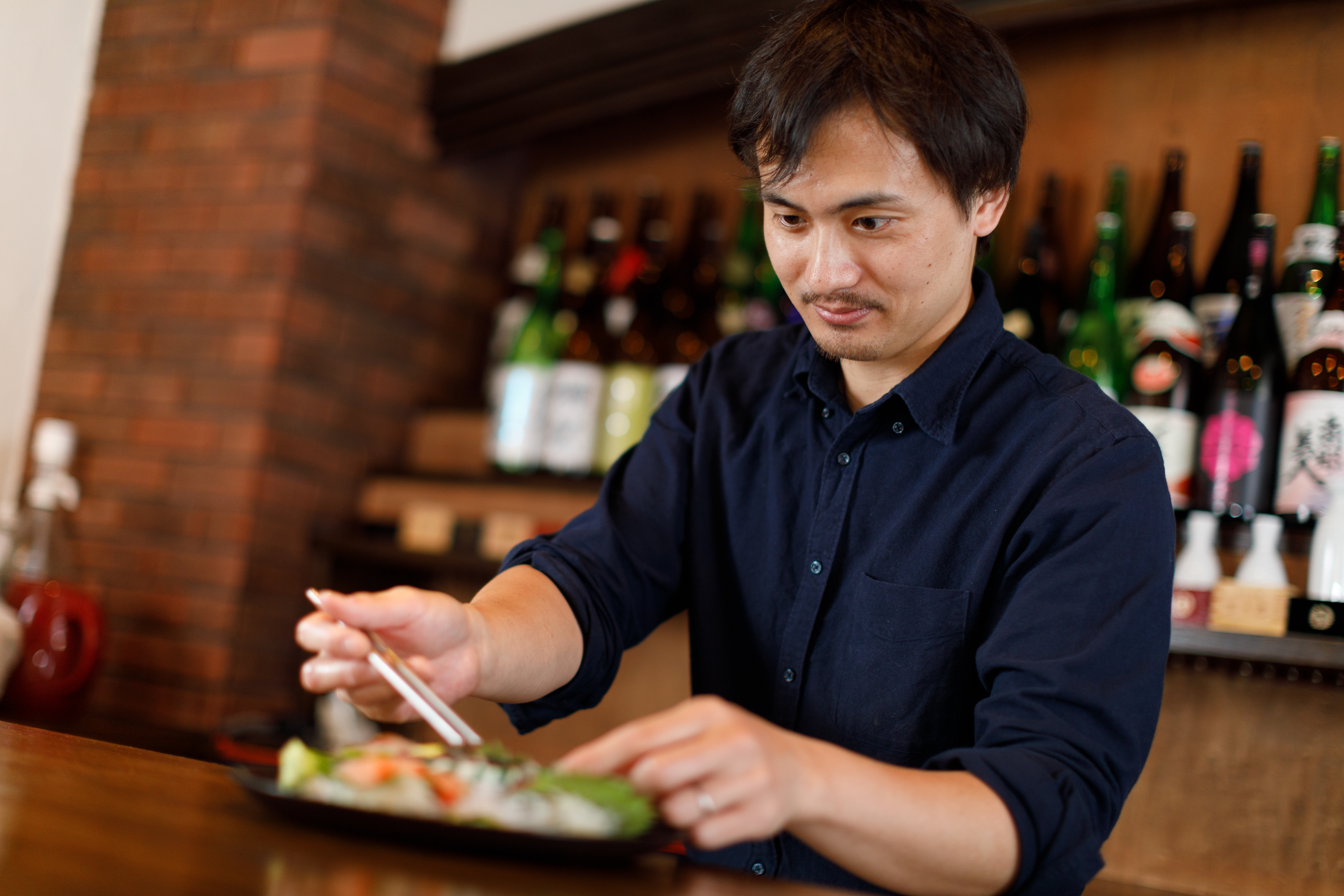 ドリンクのサーブをセルフにすることで、スタッフ人員は平日で2人体制。人件費を大幅に下げられる分、日本酒や料理に原価をかけお客に還元している。