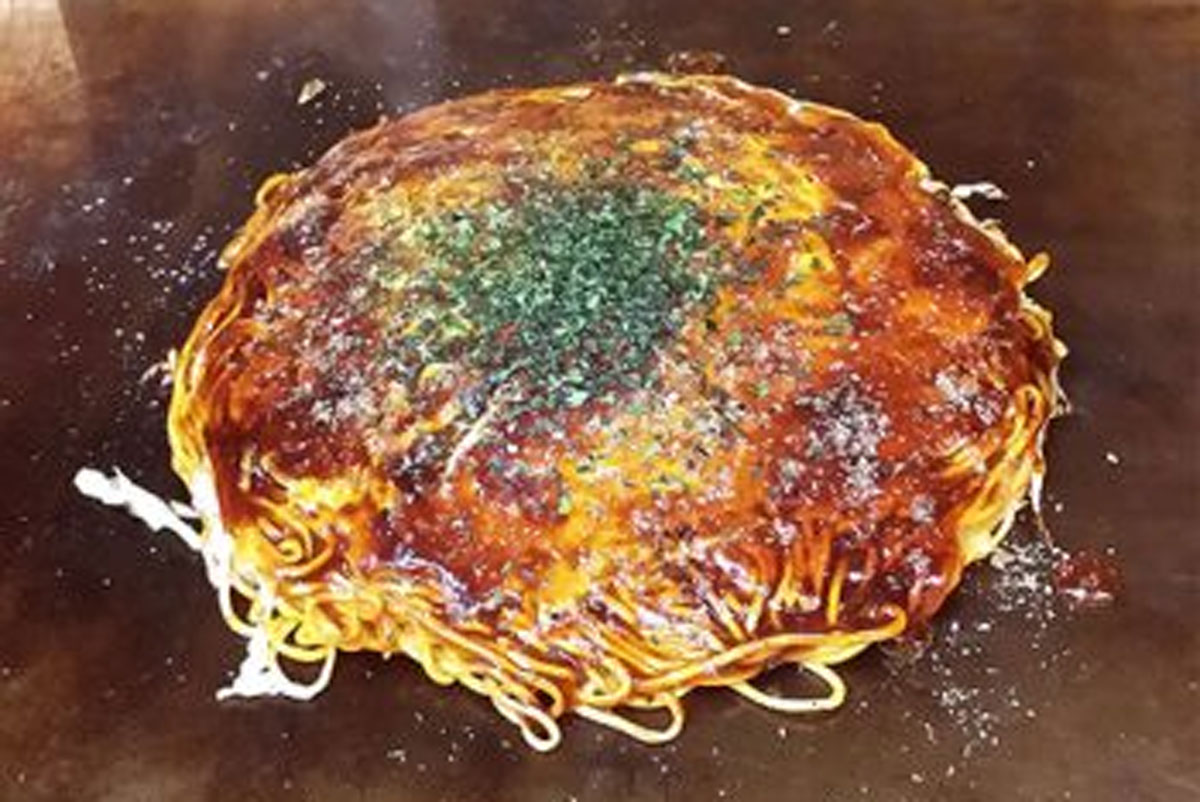 河原さんが焼くお好み焼きは、最初にクレープ状の生地を作り、その上にキャベツ・玉ねぎ・もやし・バラ肉を焼いてひっくり返し、麺の上に乗せて最後に焼いた玉子の上に乗せてひっくり返す。他の地域のお好み焼きと違い、野菜たっぷりで小麦粉はほとんど使わないのだ。ランチは女子大生や主婦層、夜は主にご近所のファミリー層でにぎわっている。